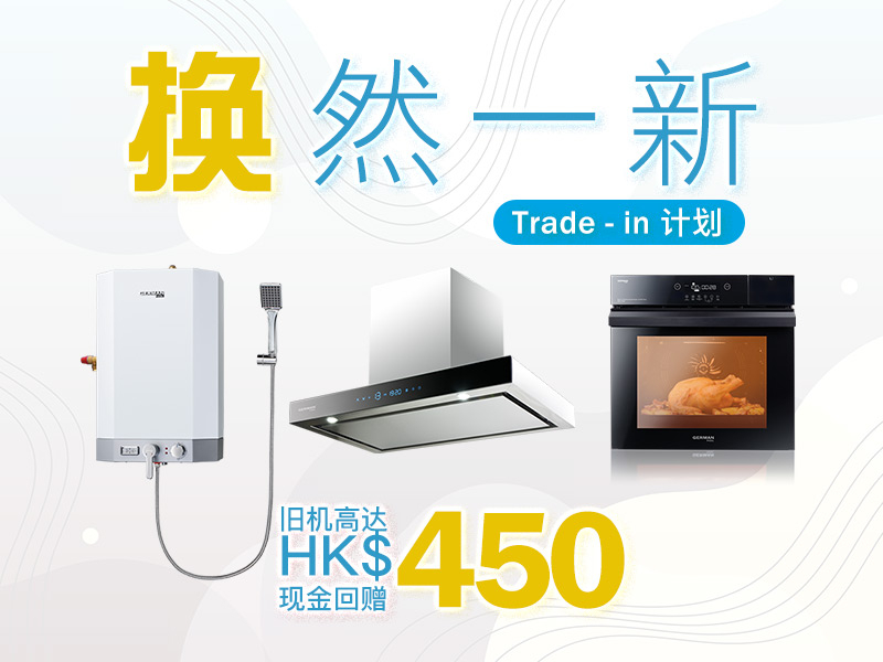 俗语有云「旧的不去,新的不来」,家家户户总有各式各样的旧电器——丢掉既觉得浪费,反正还能用;留著又总觉不足,毕竟功能远不及新款。作为「家电大王」的德国宝深知大家需要,特意推出「『换』然一新Trade-in换购计划」,让您轻轻松松安坐家中,即可换上全新热水炉、抽油烟机、煮食炉和嵌入式焗炉,又不怕旧机变得毫无价值!