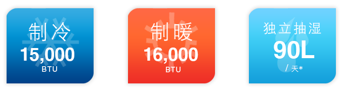超强90 L/天独立抽湿功能,长时间保持室内清爽,在潮湿的春夏季节仍能感觉清新舒适。