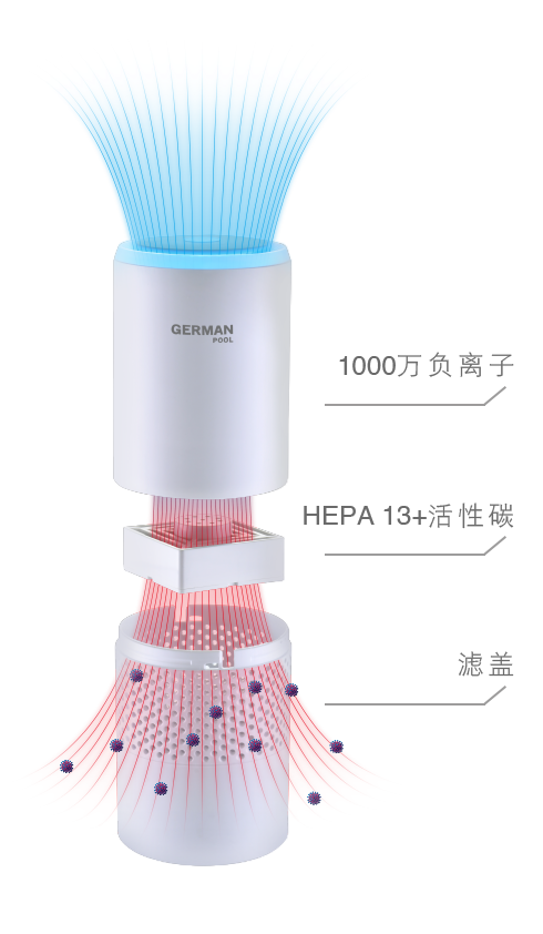 了解更多配备4重过滤净化系统:先以前置滤盖拦截毛发、皮屑、尘埃及其他大型颗粒;再以HEPA 13滤网过滤空气中0.3µm (PM 2.5)的病毒、细菌、致敏原甚至气溶胶*,同时以活性碳吸附甲醛、废气、烟雾及异味;最后透过1,000万高浓度负离子抑制病毒以及各种有害物质,快速高效,保护您和家人健康。