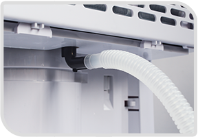 只需装上随机配备的水管,即可连续抽湿;抽湿机持续运作,抽湿量更大,保持室内环境干爽舒适,还可免除不断清理水箱的工作。