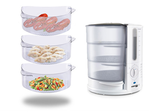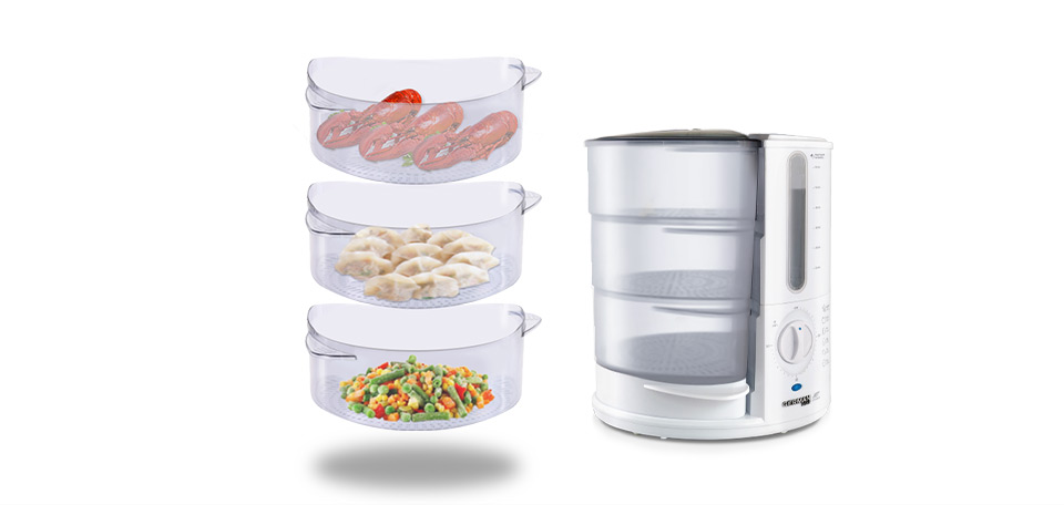 使用三层蒸格同时烹调,份量足够全家享用,节能省时。