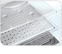 蒸盖采用全透明材料,全方位透视一目了然。可拆式方形设计,360°无阻放取食物,贴心便利。