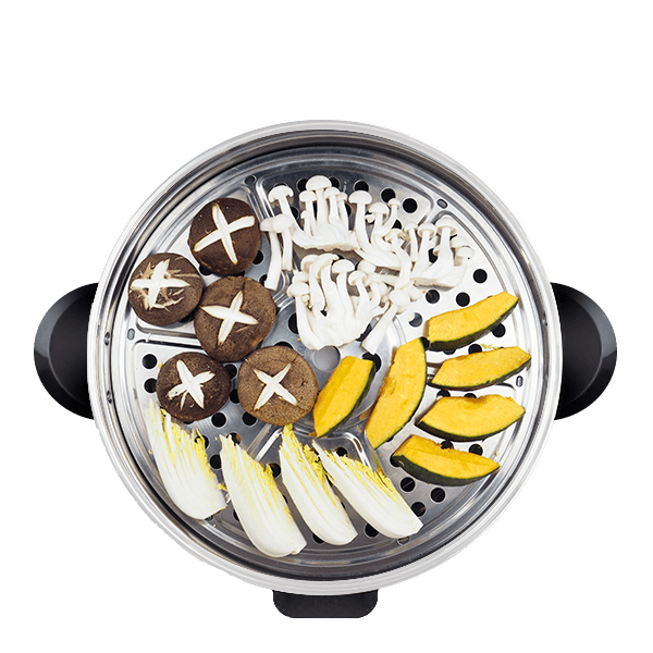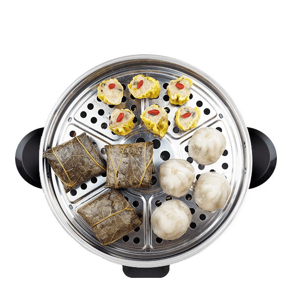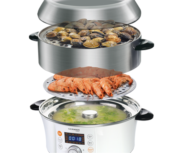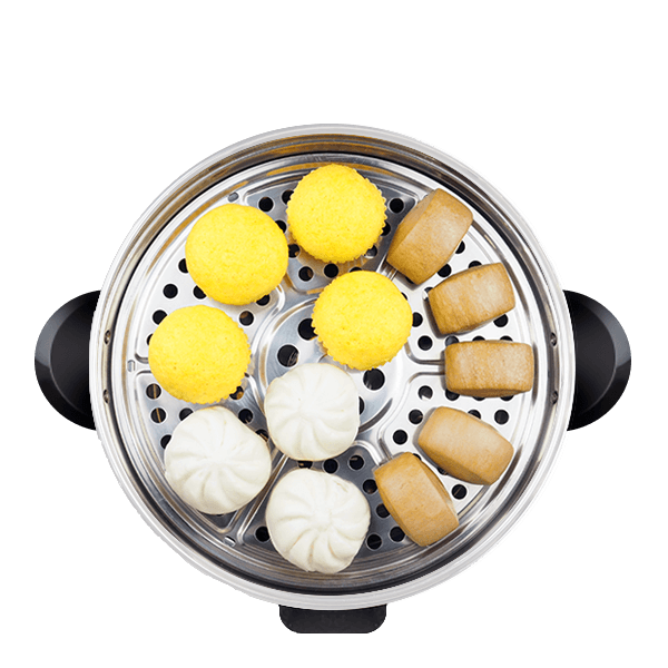 利用高温蒸气迅速蒸熟食物,使食物快速均匀受热,锁住水分和营养,带出食物原汁原味。多层易拆式设计,轻松实现多层蒸煮,是炮制粥底桑拿蒸气锅之首选。