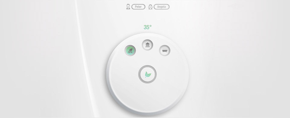 用家可依个人喜好快速预设洗手、洗澡或泡浴的热水温度。「智能拨盘」简易选择已储存的所选温度。