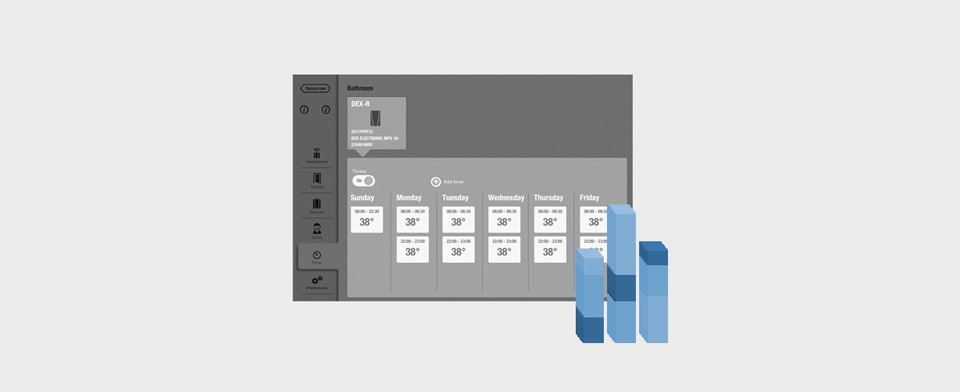 用家可以按照自己的生活节奏调节预调特定时间之出水温度。亦可以随时通过智能版面进行调节设定。
