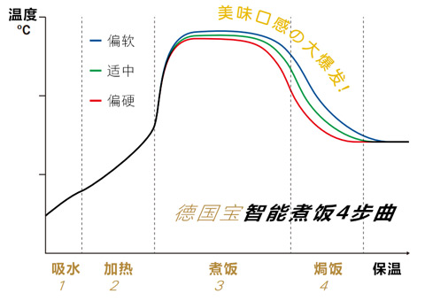 因应烹调份量,微电脑智能控制吸水时间,活化淀粉酶,促进淀粉质糊化。