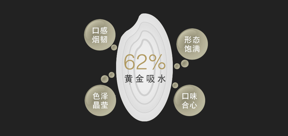 悉心调节温度及时间,62%黄金吸水比例垂手可得,使口感更烟韧、色泽更晶莹、形态更饱满、口味更合心意。
