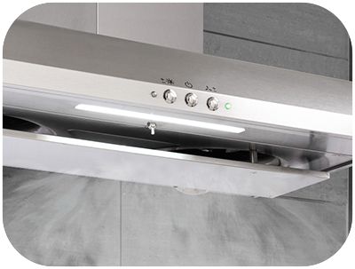 LED照明灯特设三档亮度调节,耗电量低而亮度高,比一般抽油烟机的石英灯更悭电。