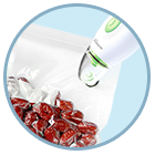 对食物进行真空处理是低温慢煮至关重要的步骤,传统的真空处理方法既麻烦效果又不好。德国宝USB充电真空保鲜机,备有多款不同尺寸真空保鲜袋,只需将食物放入保鲜袋,密封袋口,再将USB充电真空保鲜机的吸嘴对准抽气阀,一按键即可迅速抽真空,真空处理食物不再复杂,慢煮自然更简单。