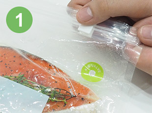 将食物放入随机附送之真空保鲜袋,拉上拉链密封好。