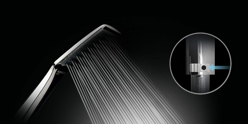 贴心配备创新空气加压技术,在花洒头底部设有可开合式气孔,打开气孔后利用水流力将外界空气吸入花洒头内,以增加内部压力,形成冒泡式高速水流提速出水,体感效果可媲美每分钟出水量达9公升的按摩花洒头