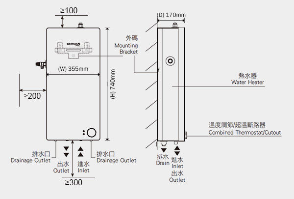 简洁出入水喉设计,安装接驳容易,有效避免错误安装。