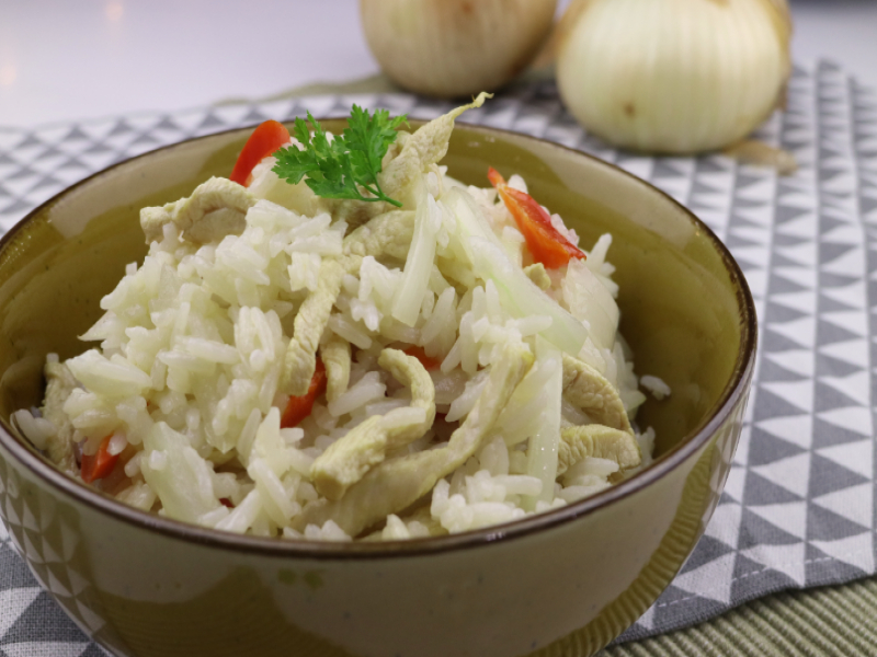 Recipe Homepage > Main Course > Steamed Rice with Fish Stock and Shredded Chicken