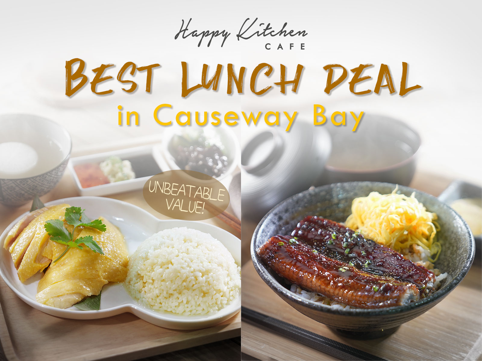 Looking for a decent place to have lunch in Causeway Bay? Happy Kitchen Café in German Pool Lifestyle Flagship Store @Fashion Walk can be your new go-to destination! The latest additions to our lunch menu – tender and scrumptious boneless Hainanese Chicken Rice ($48) & the thick and juicy Unagi Don Set ($68) are totally irresistible, and the best value for money in CWB!