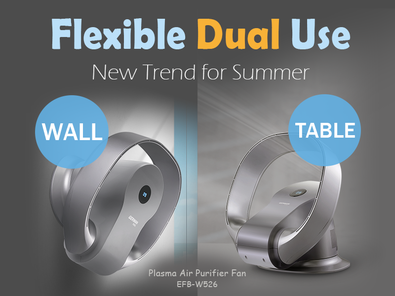 The humid and roasting summer is a torture for those who can’t stand the heat! How can you enjoy summer without an efficient and durable fan? The new German Pool Plasma Air Purifier Wall Fan (EFB-W526) has a unique space-saving design dedicated for both wall and desk use, with plasma ion air purification. It can deliver cool and purified breeze and its BLDC motor is highly efficient and energy-saving. Achieving perfection both internally and externally, it will set the trend this summer!