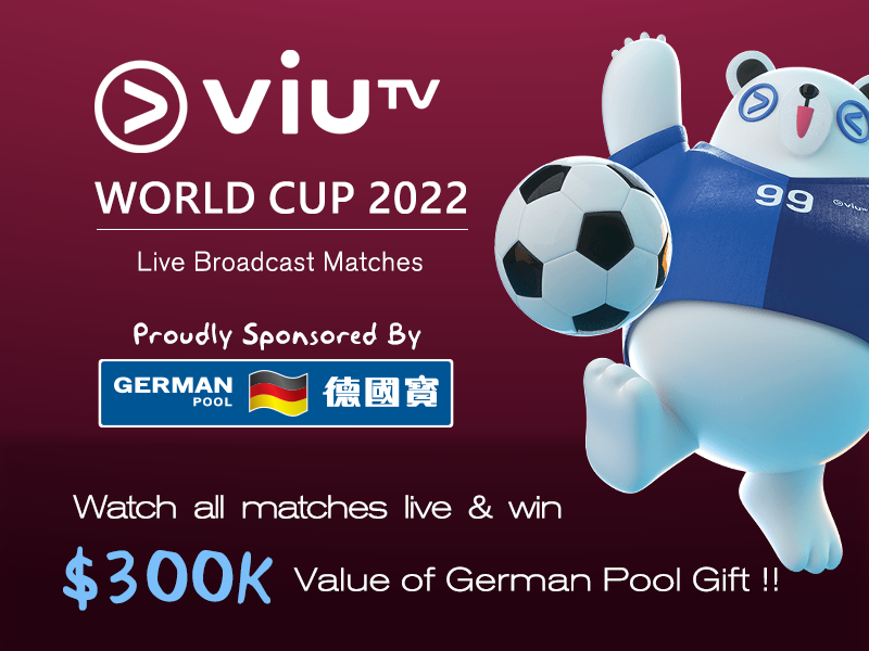 During designated program time slots on the night when ViuTV broadcasts selected World Cup matches, ViuTV mascots Sound Bear and Sound Choice will appear intermittently on the corner of the screen, simply scan the mascots with the latest version of ViuTV App to collect stamps to redeem German Pool’s galore of free gifts! (For game details, watch out for ViuTV announcements.)