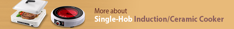 Slim square design in white matches any chic and modern home décor; at only 6cm thin, Compact Induction Cooker with Grill Pan GIC-KS20T easily tucks away in the cupboard when not in use.