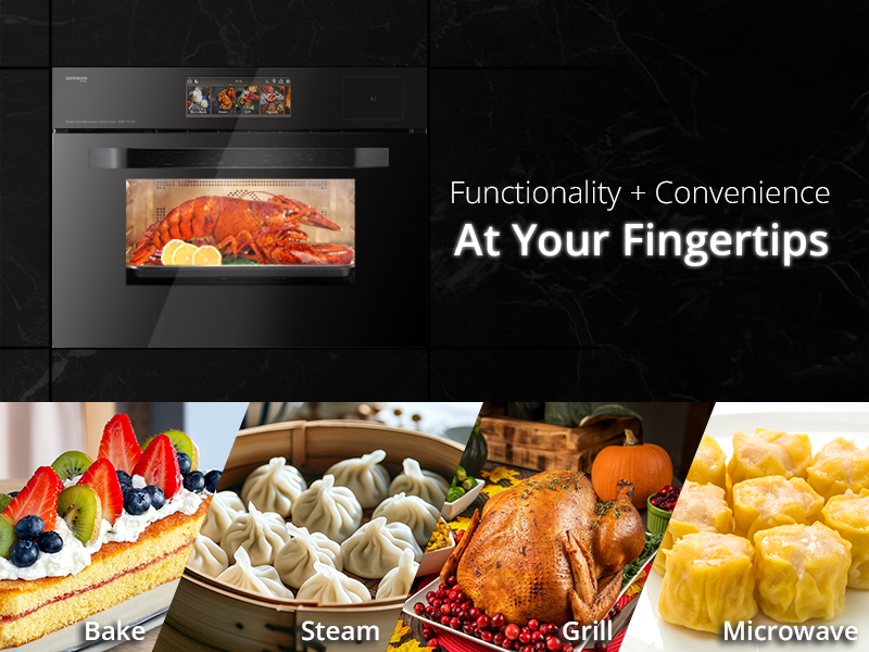 Newly upgraded full-color touchscreen allows for easy setting of cooking modes, recipe selection, and clear display of cooking status. All you need to do is point and glide, and Built-In Steam & Grill Microwave Combi Oven will cook according to your command. Use Steam, Grill or Microwave functions individually, or combine them freely for more elaborate cooking with shortened cooking time, quickly whipping up a scrumptious and healthy meal for the whole family.