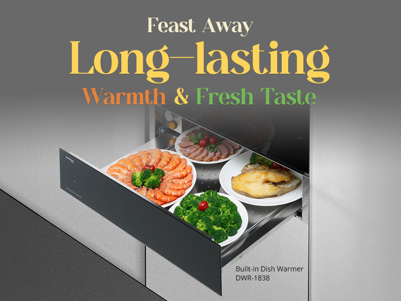 The new Built-In Dish Warmer (DWR-1838) can be paired up with Built-in Steam Grill Oven series! The two combined take up the standard cutout dimensions of a 595 mm traditional built-in oven, so you can enjoy all the benefits of two appliances without reconstructing your kitchen cabinet.