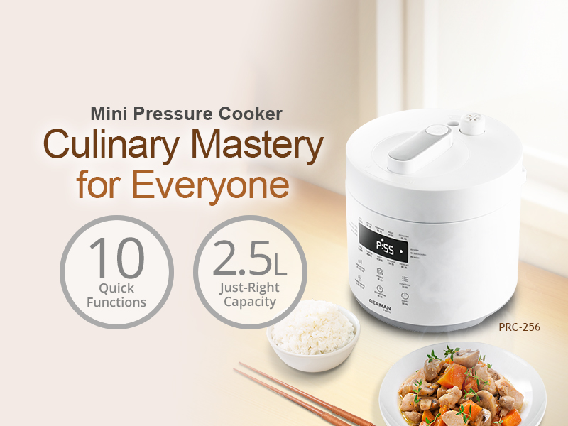 Introducing the new Mini Pressure Cooker PRC-256 ! Tiny yet mighty, this multifunctional pressure cooker has a 2.5L capacity which is just right for 2-4 persons, and it comes with 10 very practical functions including Rice, Congee, Soup, Stew and more! Together with 70kPa Intelligent Pressurizing Technology, nutrients are locked in, and cooking time is shortened by over 60%! Rice is cooked to perfection in only 12 minutes, perfect for those with a busy schedule or those who simply don’t want to waste time on cooking!