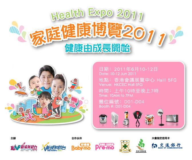 At the coming Health Expo 2011, German Pool will bring visitors special offers on a variety of latest health products, including the newly launched Professional High-Speed Food Processor (PRO-10), Halogen Cooking Pot, Far-Infrared Tapping Massager and more. The expo will be held on 10 - 12 June, 2011 at the Hong Kong Convention and Exhibition Centre. Lead a healthy life starting with German Pool cookware and healthcare products!