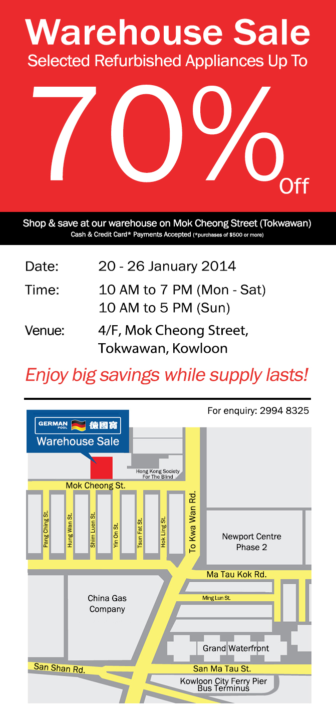 There are a selection of range hoods, Professional High-Speed Food Processors, Halogen Cooking Pots, Ultimate Rice Cookers, 8-in-1 Deep Fry Cooker, Tower Heater (with remote control), and Far Infrared Radiator. Some of these products are up to 70 percent off. Limited time offer while stock lasts!