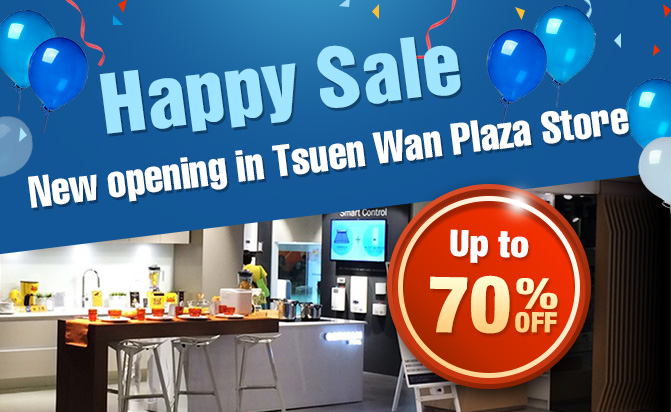 To commemorate the soft launched Tsuen Wan Plaza Flagship Store, we are now having a "Happy Sale"in our stores, up to 70% off on selected items. Besides, selected air conditioners from German Pool are available, starting from today, for as low as 40% off at our showrooms.
