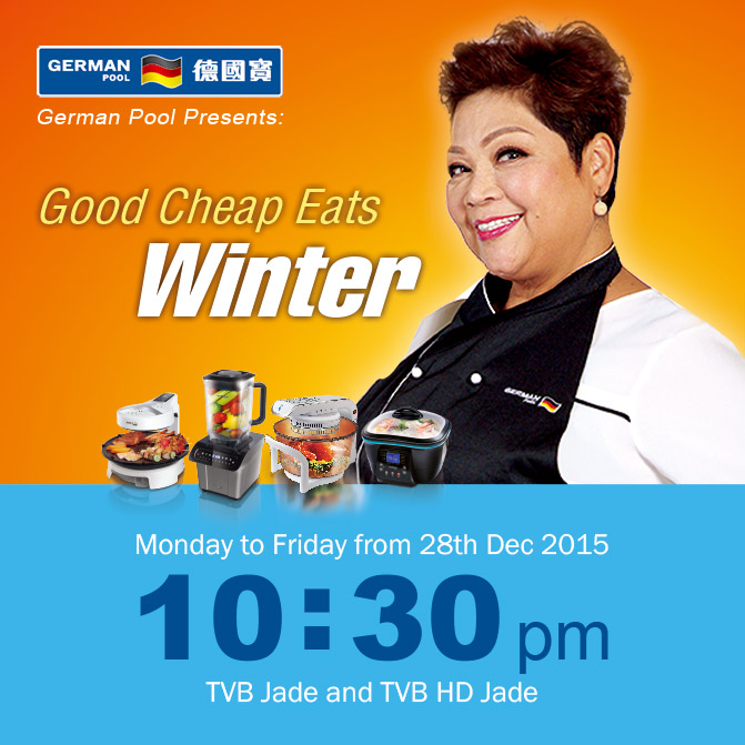 Maria Cordero and Luk Ho Ming’s “Good Cheap Eats” series has just returned! In the brand new “Good Cheap Eats Winter”, German Pool continues to provide Maria with a range of user-friendly kitchen appliances, allowing her to efficiently demonstrate her ways of creating delicious cuisines.