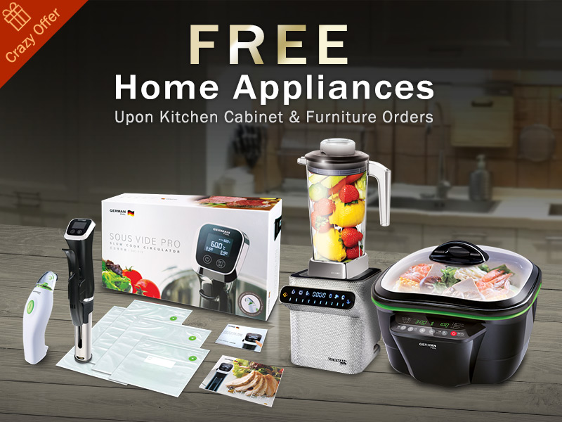 The German Pool Kitchen Cabinet Series is presenting you another crazy special offer! The new promotion offers you free selected kitchen and home appliances with kitchen cabinet and furniture purchases of a requisite amount.