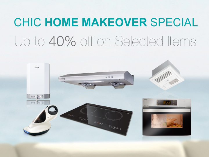 German Pool Cabinetry & Appliance Centres introduces immediately the “Chic Home Makeover” promotion. Selected products are discounted up to 40% off the original price. There are also packages designed to give your kitchen and home environment a quick, fresh boost.