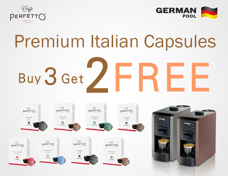 Enjoy special offers from German Pool and savor the authentictaste of Italian Coffee. From now on until 30th June 2018, buy 3 boxes of Caffè Perfetto Capsules (16 pcs per box) of selected flavours and get 2 more for free* at any German Pool store (e-store included)!