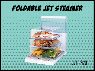 Foldable Jet Steamer is designed for many people sharing, 3 levels of steaming baskets can be expanded to 18.8 liters of large capacity. Easy to prepare steamed seafood, vegetables, meat, etc.
