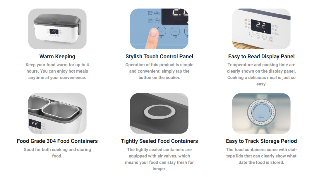 ( steam/reheat/soup/congee/dessert/keep warm), and 4-hr keep warm function, so you can eat whatever whenever, totally up to you.