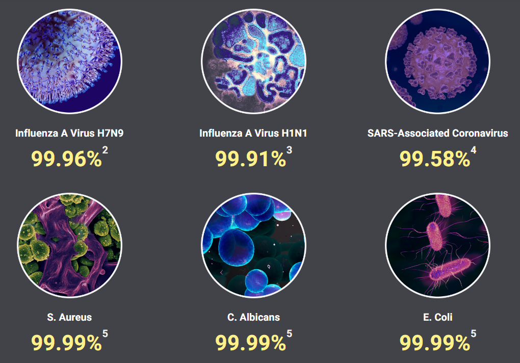 Through repeated scientific testing, the EFB-P20H Filter System is proven to effectively filter out various common viruses, even SARS-associated coronavirus, while simultaneously inhibiting mold bacteria from forming even under 90%1 humid circumstances.