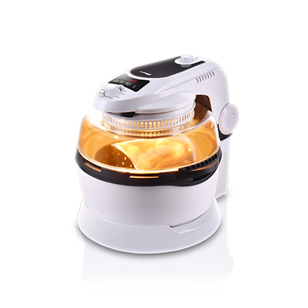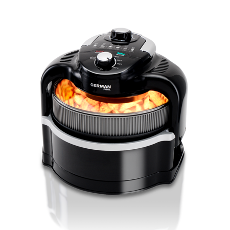 German Pool Halogen Air Fryer is a cut above ordinary air fryers on the market. Our exclusive halogen heating technology penetrates meat thoroughly, allowing the meat to be air-fried to perfection, crispy on the outside but tender and juicy on the inside! Compact design won’t clog up your kitchen counter, but with the additional metal ring extension, you can expand the cooking chamber from 4.5 L to a whopping 7 L – more than enough to fit in a whole chicken! The fortified transparent glass lid lets you closely monitor the cooking process without having to open the lid midway during cooking as you would when using drawer-type air fryers!