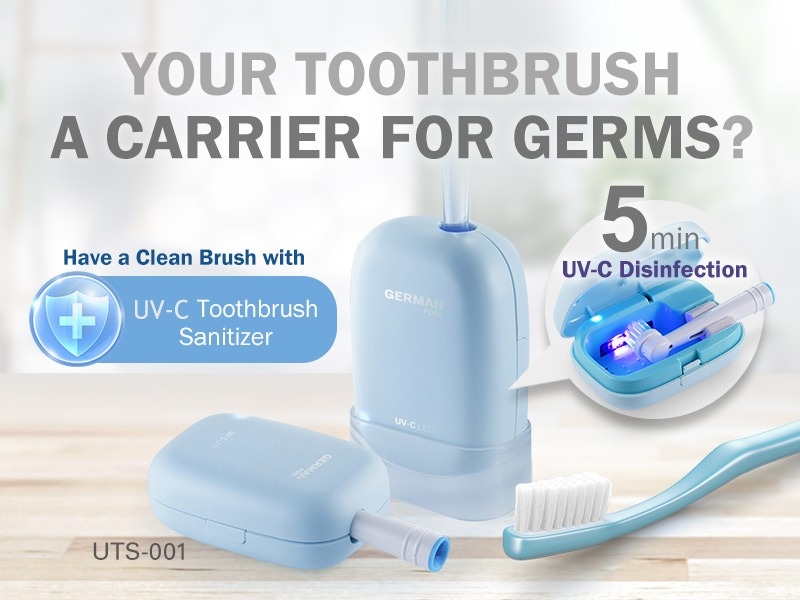 A study by the University of Manchester reveals that your toothbrush may actually be housing more than 100 million bacteria! To ensure your toothbrush is clean enough to be put into your mouth, why not give a try to the all-new German Pool UVC-LED Toothbrush Sanitizer (UTS-001)? With its advanced UV-C LED, 99%* of germs on your toothbrush are shut from entering your mouth. It’s so compact that you can carry it around in your jeans pocket, while fitting most toothbrushes out there.