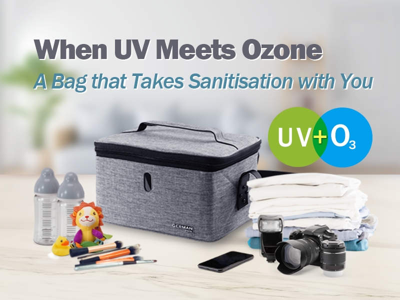Ever since the pandemic started raging, masks and hand sanitizers have become part of our lives. But things you carry around may actually pick up a LOT of virus and bacteria on the way! This is why you need the all new German Pool UV+OZONE Sterilizer Bag (OUB-108GY), the only sterilizer bag in town with dual sterilization power to eliminate 99.99%* common bacteria! With a generous 7.8L capacity, most of your daily belongings from phones and glasses to baby bottles and cosmetics shall fit. With the simple push of a button, they should all be sanitized and germ-free. A detachable shoulder strap lets you wear it they way you see fit, and a luggage sleeve fits the pull handle of your suitcase. It’s a bag of sanitization that you take with you!