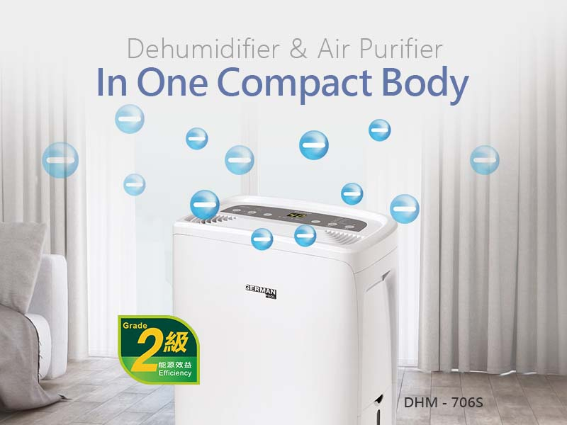 The new dehumidifier DHM-706S removes up to 12L of moisture a day from indoor air* (equivalent to 48 cups of water!), within a slim, space-saving body. The Grade 2 Energy Efficiency certification from Hong Kong’s Electrical and Mechanical Services Department (EMSD) helps safeguard not only the Earth but also, equally important, your wallet!