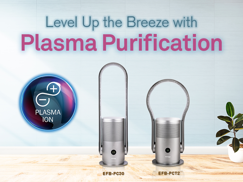 The latest Plasma Air Purifier Fan (EFB-PCT2) is so compact to pack in plasma air purification, high-efficiency filtration and UVC sterilization: