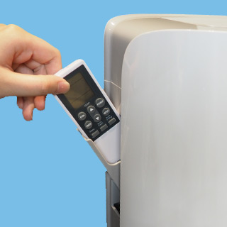 Press the side of the air conditioner lightly to open the hidden remote control storage compartment and place your remote control inside. It is convenient, space-saving and aesthetically appealing.