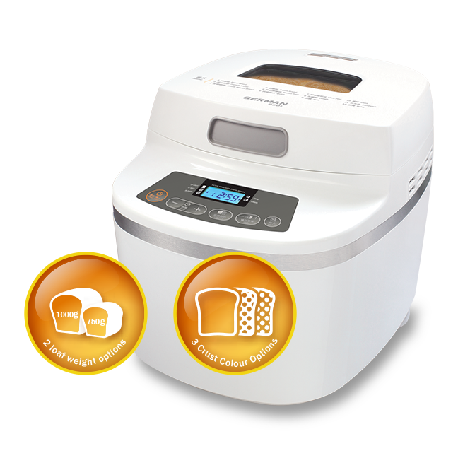 Two loaf weight options for making 750g and 1000g bread. There is enough to share for families both big and small. There are also three crust colours - light, medium and dark, for different preferences.