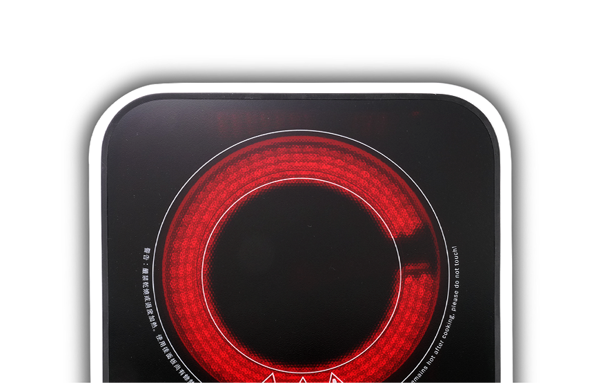 Far-infrared heating transmits heat directly to cookware; heats fast, saves energy, and is totally radiation-free.