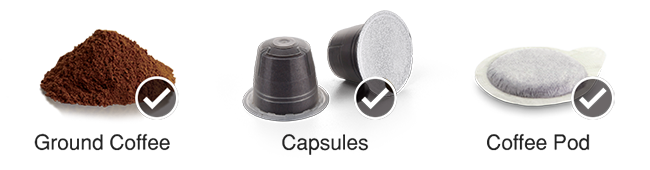 The Multi-Capsule Coffee Maker are compatible with different capsule brands, coffee pods and ground coffee.