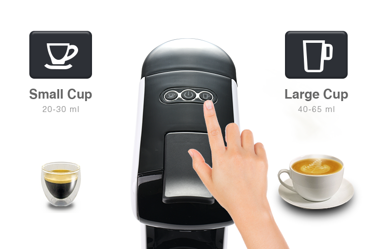 The simplistic control panel only consists of 3 buttons. Operation is easy and straight-forward. Available in two different volumes of cup for your selection.