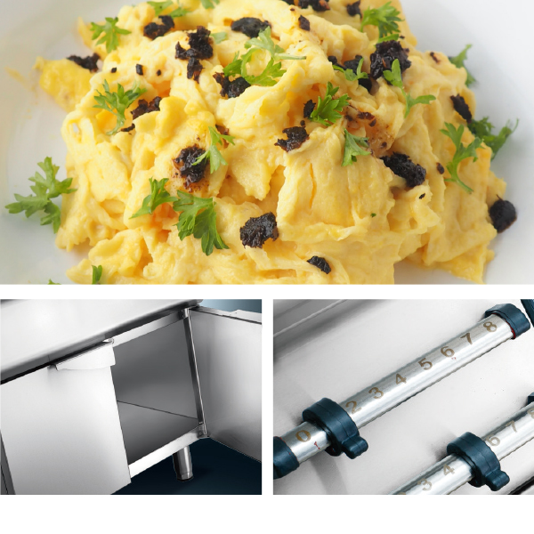 Thanks to seamless wielding craftsmanship, cookers can withstand water being poured to the cooktops or control panels. The display and the sliding switch are completely waterproof with an IPX8 rating, making cleaning of equipment much more easier.