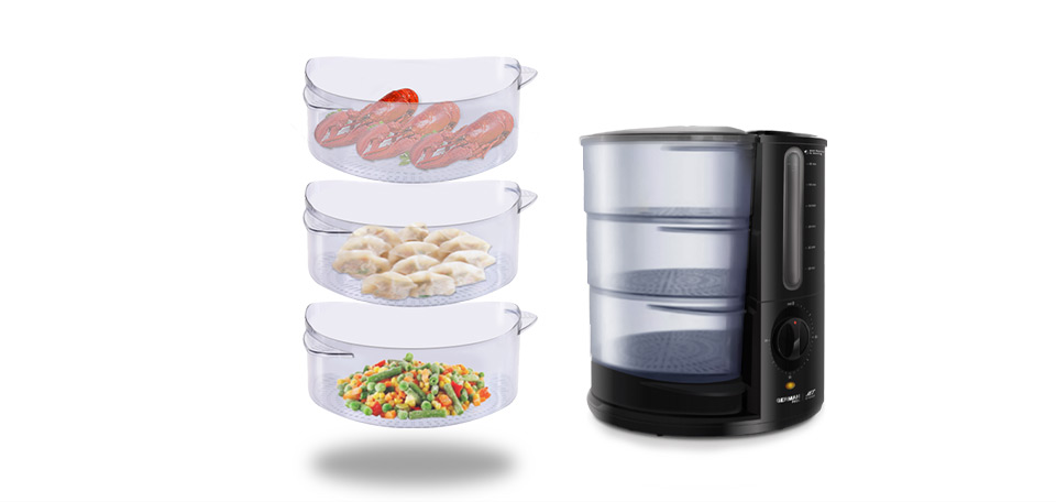 Cooking with 3 levels of steaming baskets at the same time enables you to prepare portion of food sufficient for your whole family.