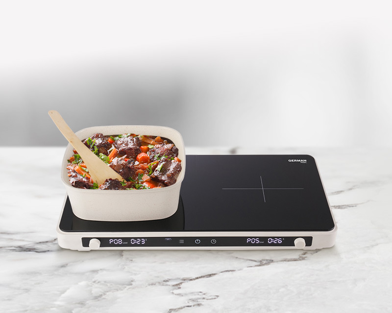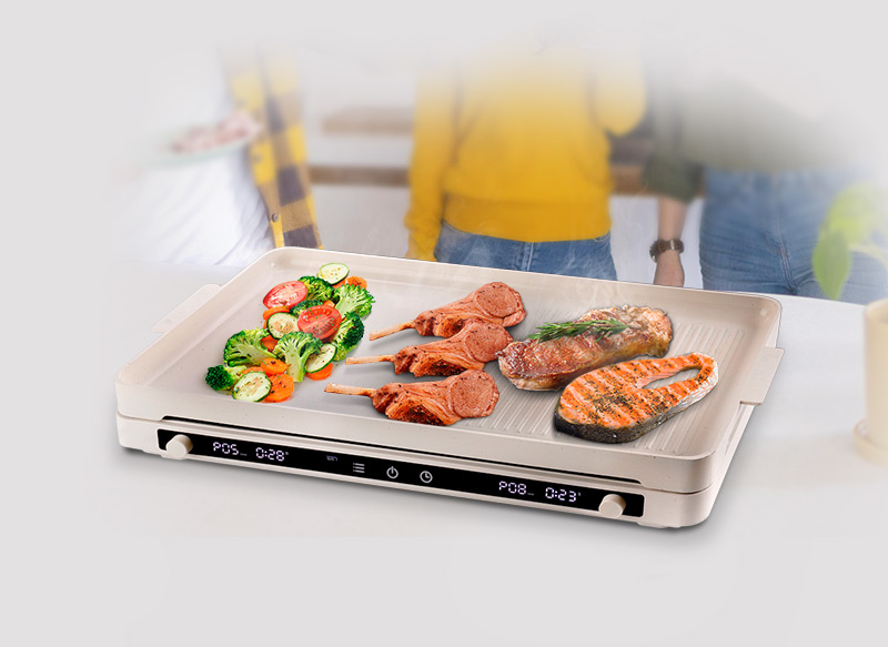 Compact Double Hob Induction Cooker with Grill Pan is the only cooking appliance you will need to create the perfect dinner, covering all your cooking needs from grilling, making soup, steaming seafood to keeping your food warm.