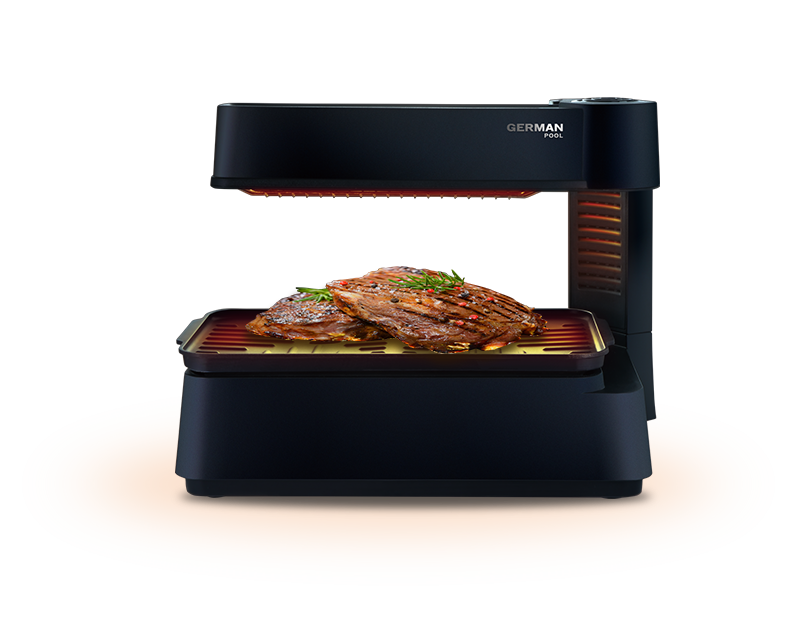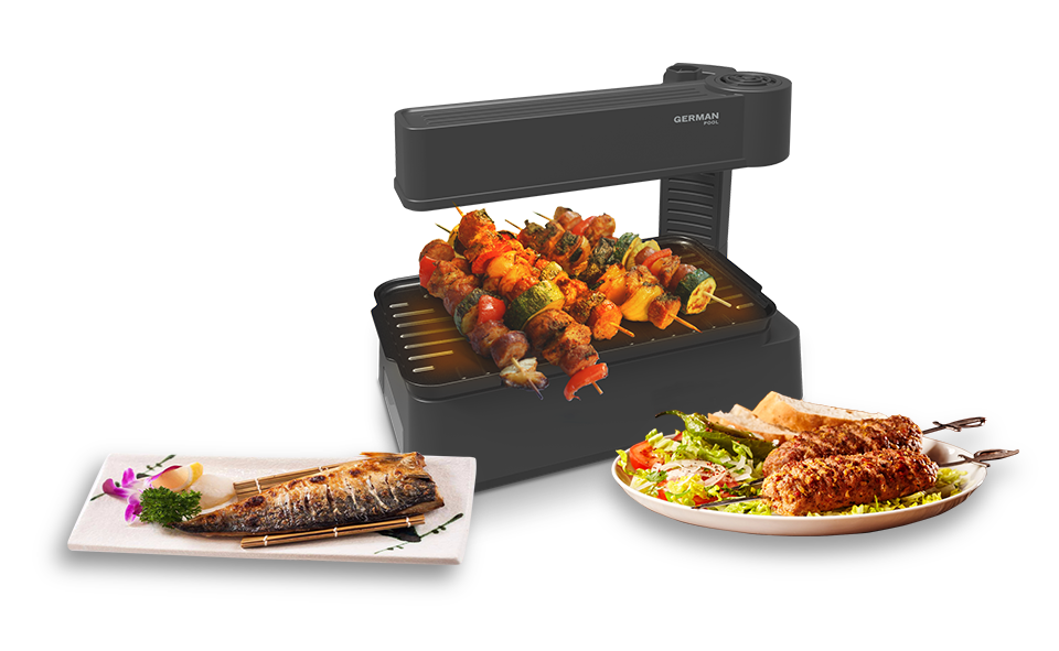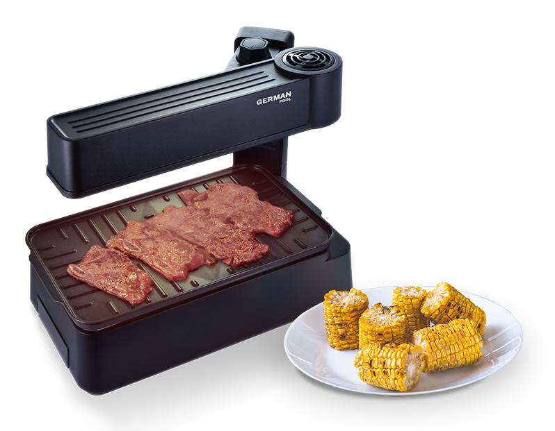 The upper heating element of Korean Barbeque Grill's prevents oil from dripping or overthrowing onto the heat source, avoiding excess fuming.