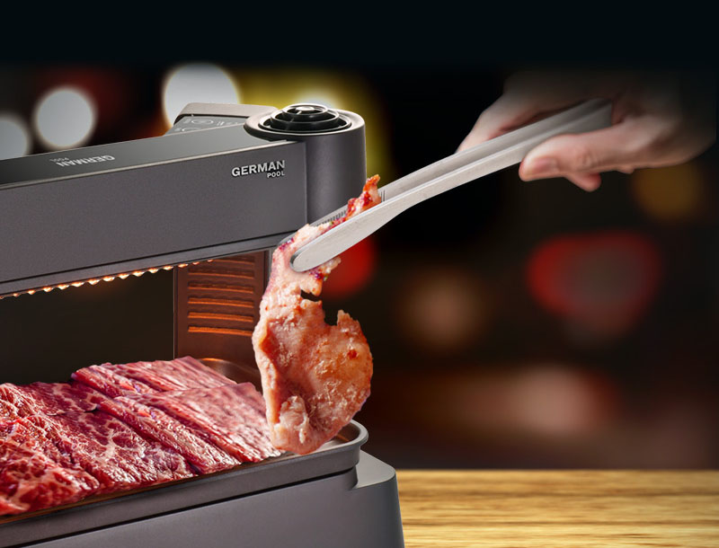 This pair of Stainless Steel BBQ Tongs is designed to have its gripping ends lifted up when placing on the dining table. So enjoy your fumeless, greaseless BBQ feast with the German Pool Korean Barbeque Grill without dirtying your favourite meats!