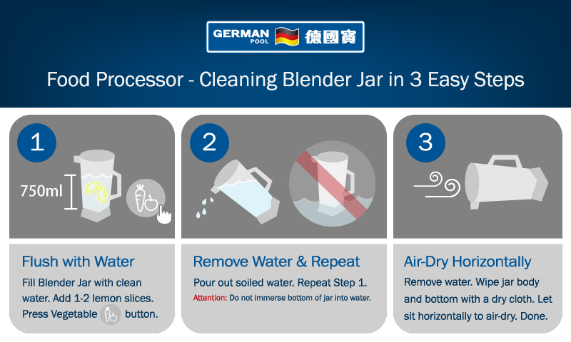 The food processor comes with a stainless steel anti-tipover jar base & safety devices such as displacement shut-off, over-heat protection and current overload protection.